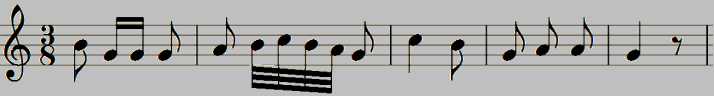 auch Metrum oder englisch "Beat" genannt. Man könnte die gleiche Melodie auch als 3/8-Takt notieren: